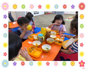 公園などで自然にいっぱい触れて、のびのびと遊びます! ※雨天の場合は室内活動 想像力を養う、指先遊びやリズム遊びなどを楽しみます! 季節の製作や、毎月のお誕生日会もこの時間に行います。 夏はプールで水遊びや、ゼリー、寒天遊びなどの感触遊びも取り入れてます♪ |