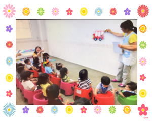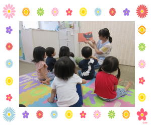 みんなで♪おはようの歌♪を歌ったり、元気に朝の挨拶をします! 季節の歌を歌ったり、絵本を見たりもしますよ! |